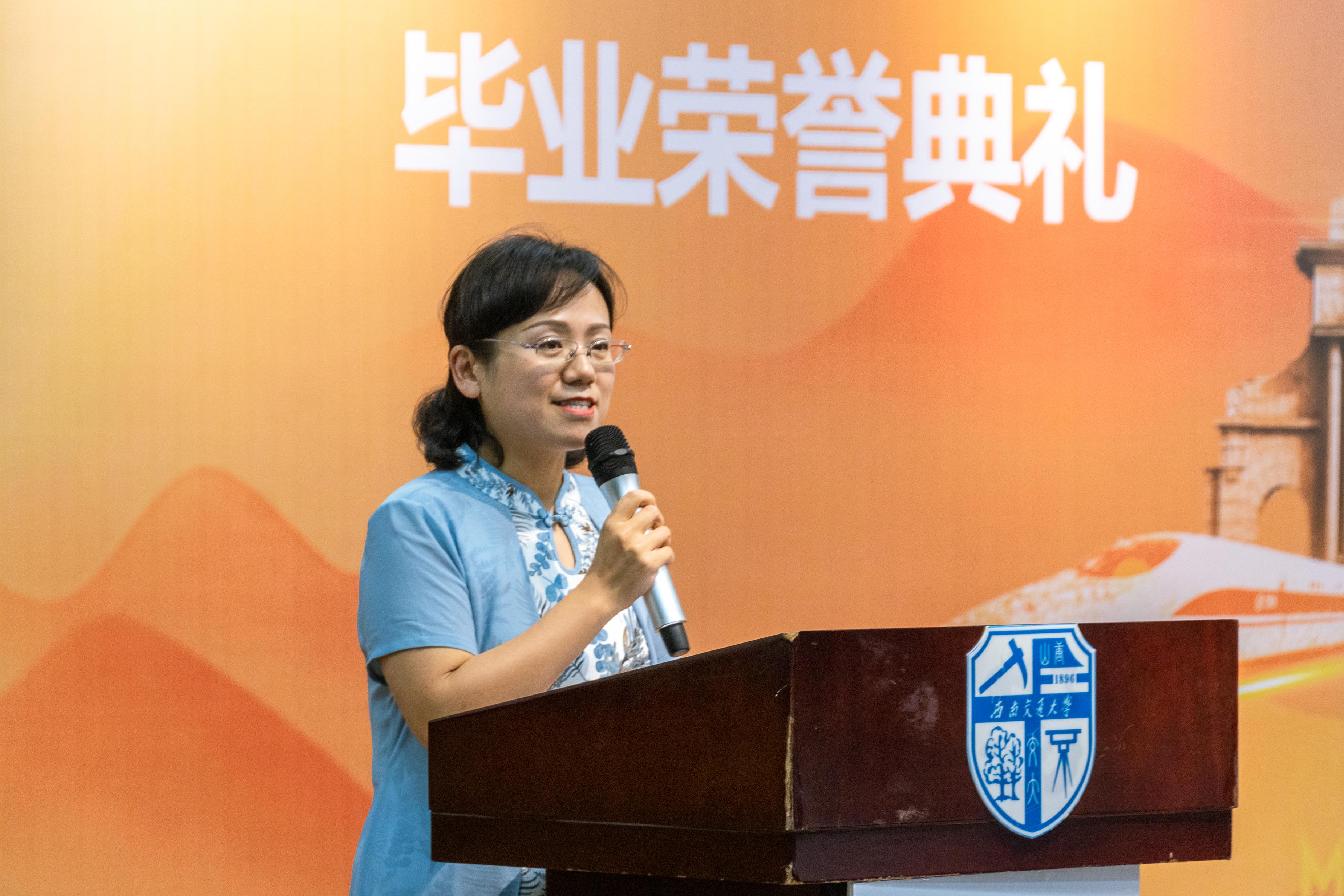 接下来,由竢实扬华奖章和唐臣奖章获得者王思羽同学发表毕业感言。她对学校、学院、老师、同学表达了诚挚的感谢,她的发言真诚而炽烈,让同学们心中都燃起了一团火,也升起了一颗星。愿王思羽同学所说的“独处的力量”能带给我们更多沉稳的思考,未来已来,就让时间继续沉淀,承载着梦想的风华正茂的我们一定可以鹰击长空、挥斥方遒!
