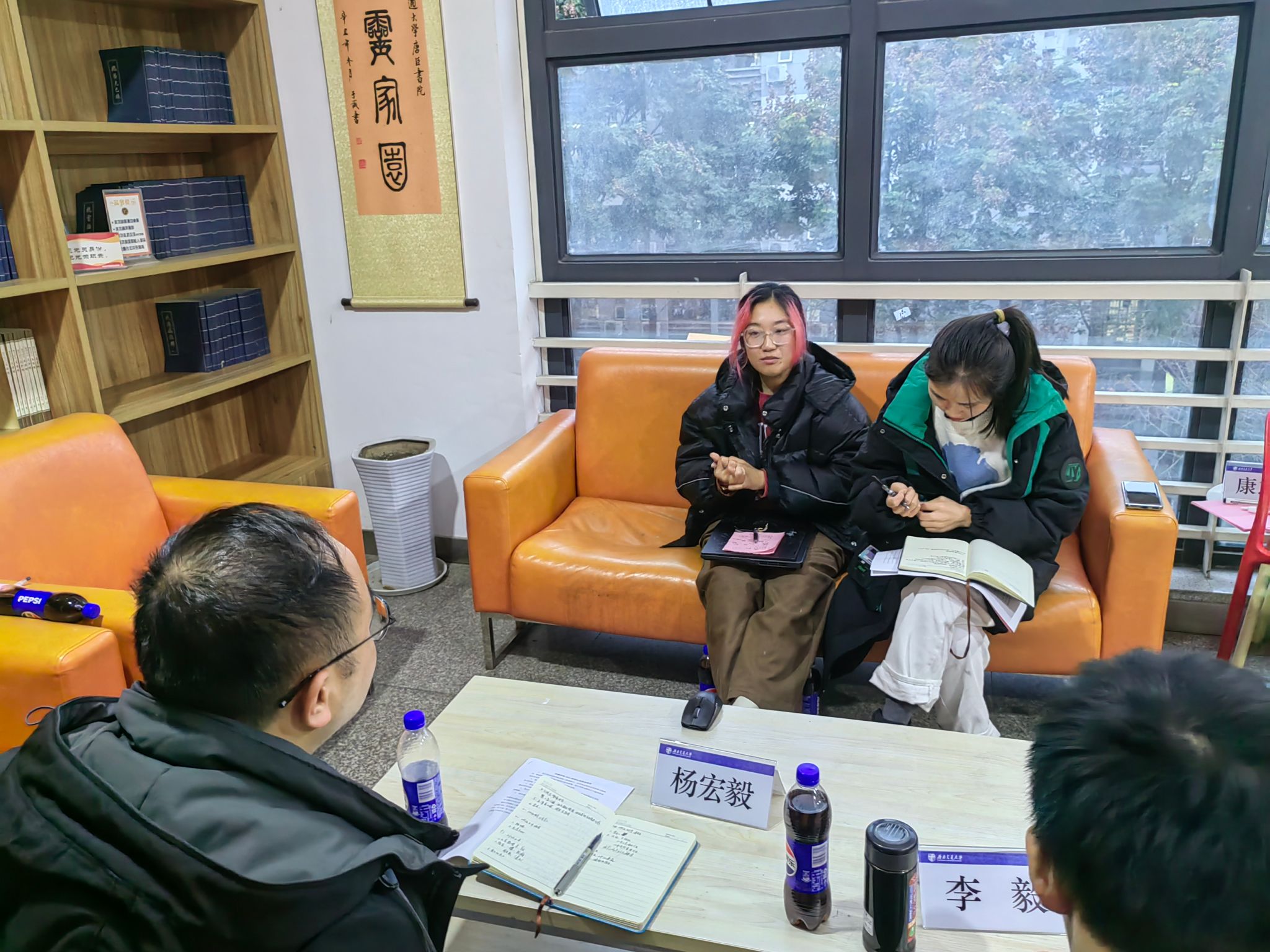 12月5日下午,av影片 在唐臣书院四楼明辨厅举办“唐臣❤驿站”第一期师生座谈会。此次座谈会主要针对2023级和2024级学生召开,吸引了来自九大专业的众多学生代表积极参与,现场气氛热烈,学生代表们踊跃发言,分享了自己和班级存在的困惑与需求。av影片 党总支书记李毅,党总支副书记、学生工作组组长杨宏毅,教务管理办公室主任王丹、辅导员康志娟共同参加本次座谈会,他们认真倾听学生的心声,与学生代表进行了深入而坦诚的交流。