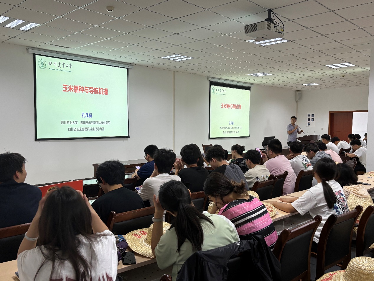 此次“玉米机械化播种”唐臣劳育课,是由四川玉米创新团队岗位专家、四川省玉米全程机械化指导专家、四川农业大学孔凡磊副教授主讲,包括室内培训和室外实操两个部分。