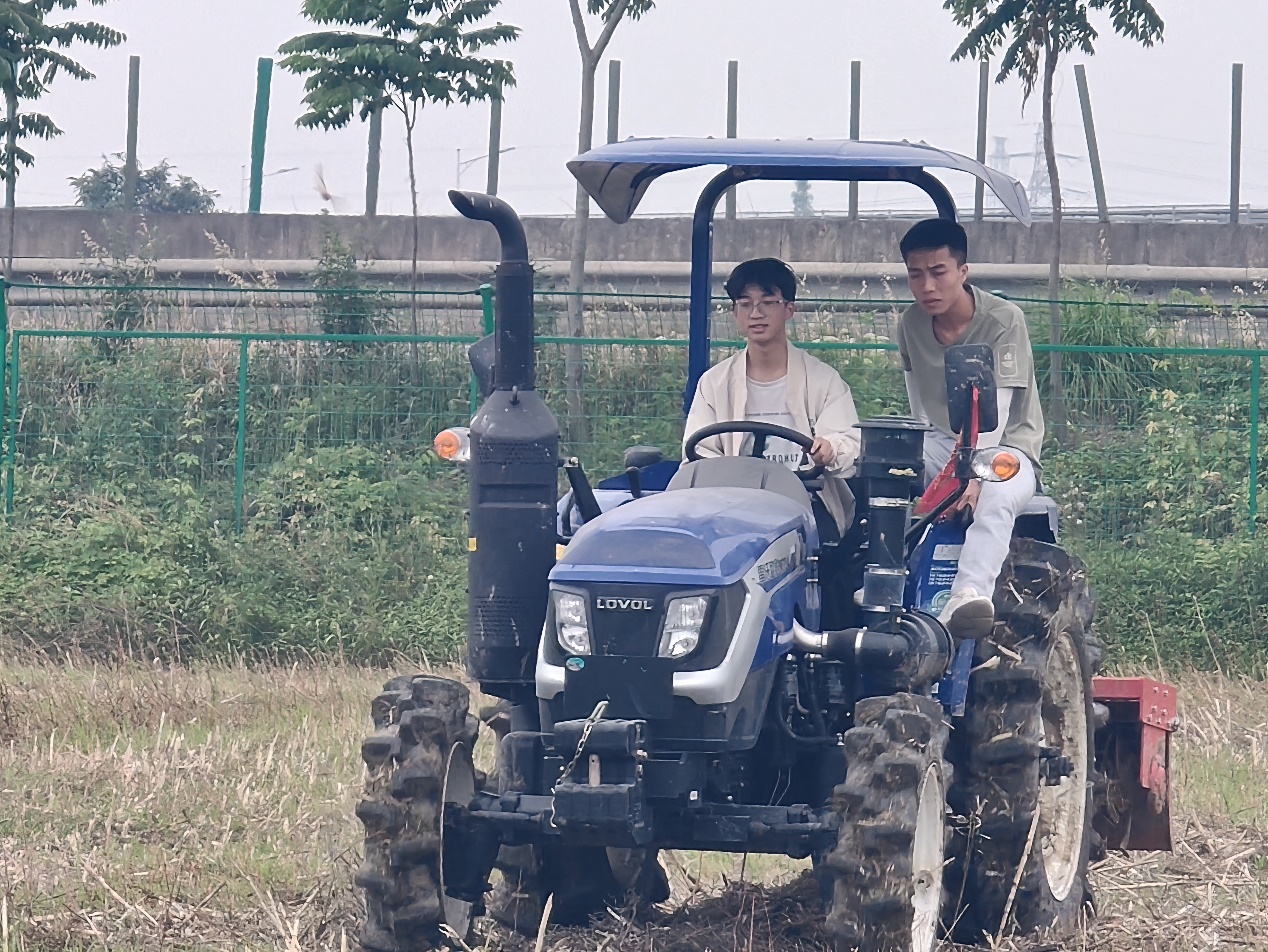 2024级计算机班王君威:农用车实用主义的设计令人印象深刻。手动挡和离合器虽需适应,却提供了应付多变地形的灵活性。驾驶时的颠簸虽没有轿车舒适,却让我能更真切地贴近了土地,感受到土地的脉搏。