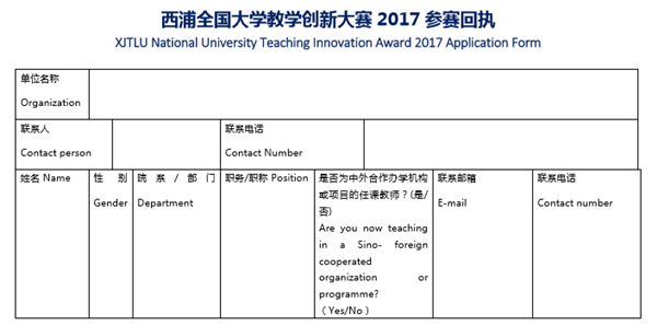 教学创新组织奖:大赛组委会将向有十名及以上的老师报名参赛的院校颁发“教学创新组织奖”,以表彰和鼓励其在大力培养和支持教师进行教学创新,积极组织老师参加西浦全国大学教学创新大赛所作出的贡献。获得院校将得到获奖证书,主办方也将在相关出版物中进行鸣谢。