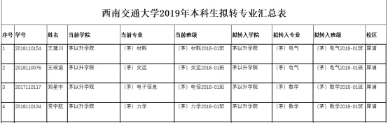 根据《av影片 本科生转专业管理办法》文件规定和av影片 茅以升学院2019年转专业的整体工作安排,经学生本人申请,学院考核,拟同意以下同学转入相关专业学习,并将相关事宜通知如下:
