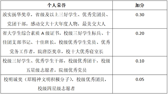 (2)获得多项荣誉,只取最高项加分,不做累计。