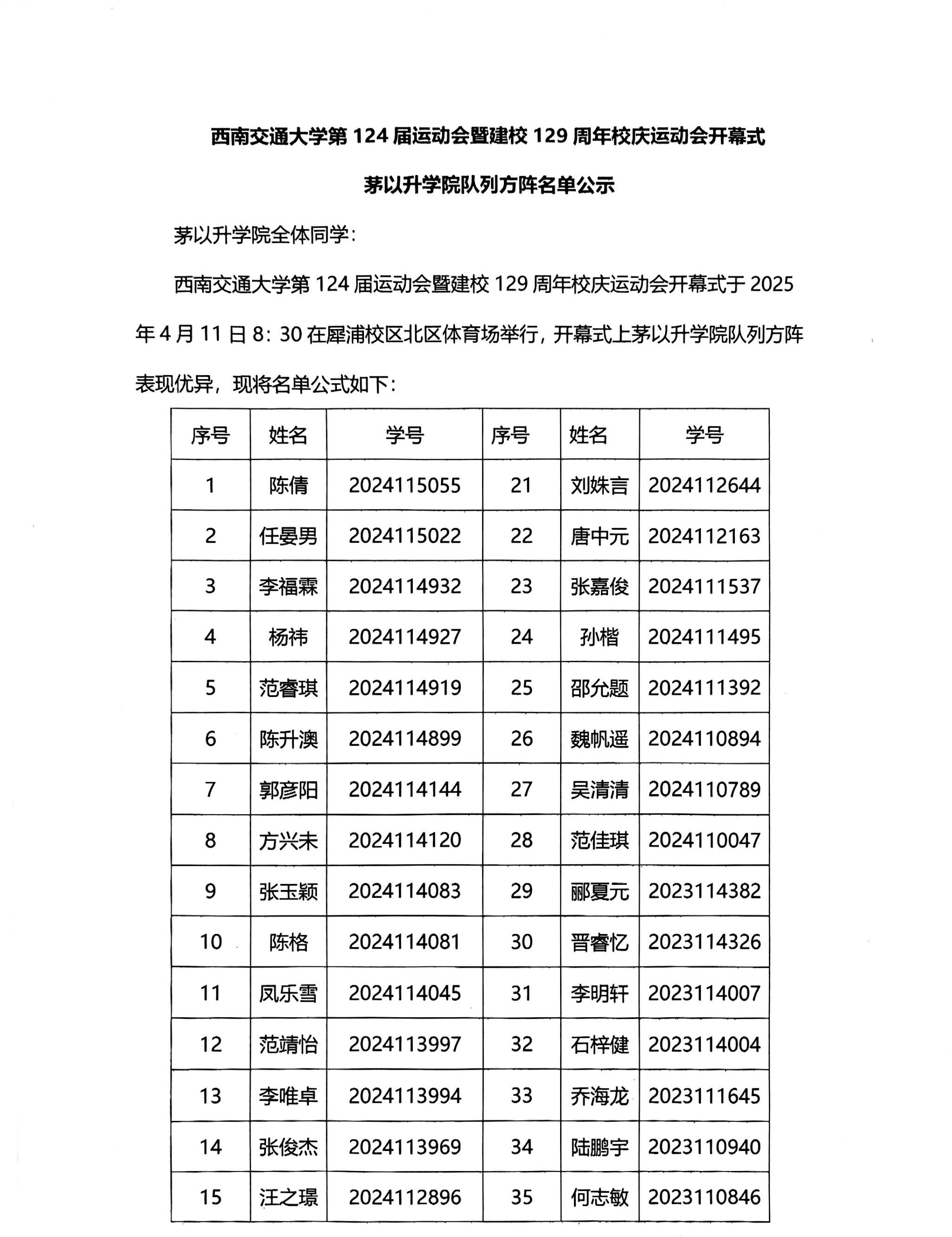 【公示】av影片 第124届运动会暨建校129周年校庆运动会开幕式av影片 队列方阵名单公示