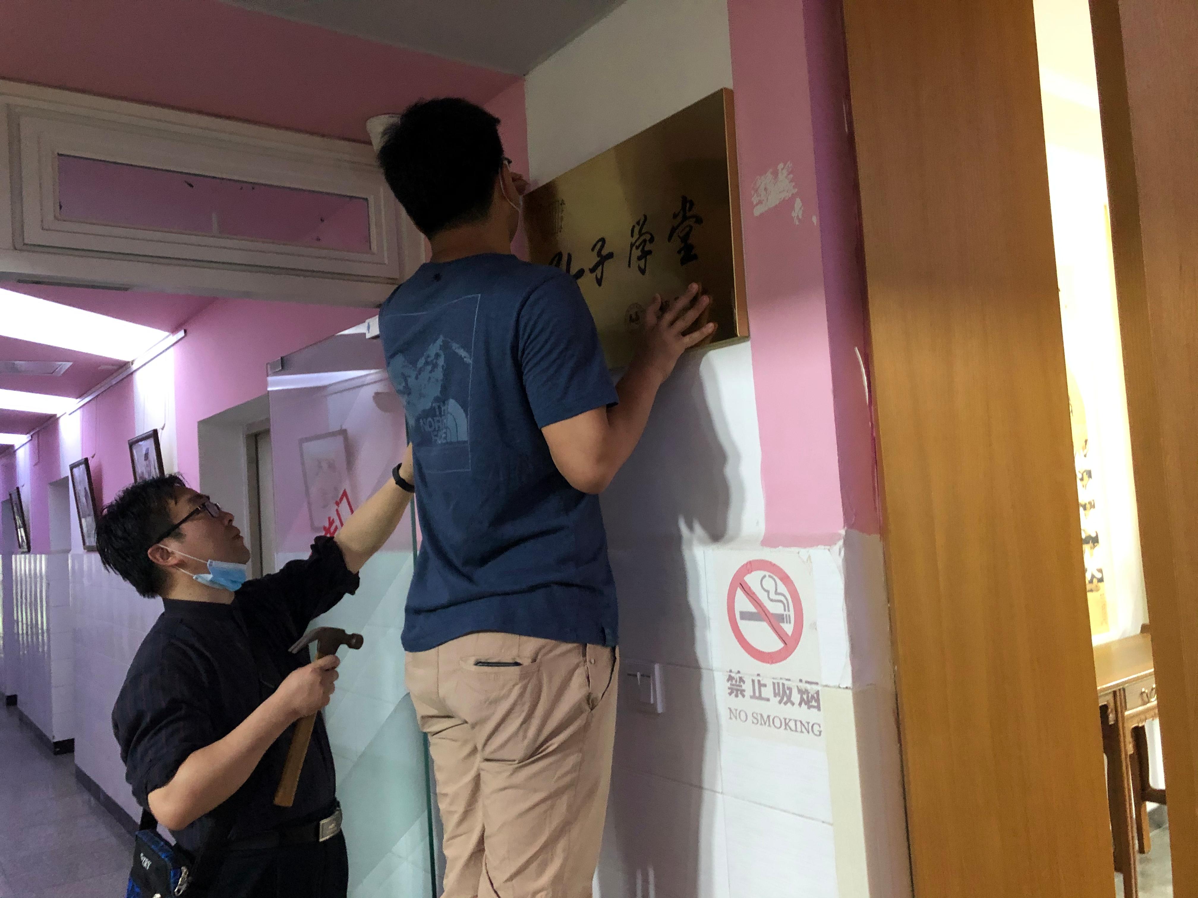 下午2:30,学院全体教工党员带着清洁工具走进书院,分别对唐臣书院各楼层公共区域进行统一清洁打扫,对书院内设施进行仔细检查,包括已重新更换布置桌椅的“孔子学堂”“唐臣学堂”,以及四楼、五楼读书阅览厅,六楼“党建走廊”,各层茶水间等;同时对各楼层主题走廊挂画进行了布置和更换,为迎接第一批茅院学子返校做好准备。