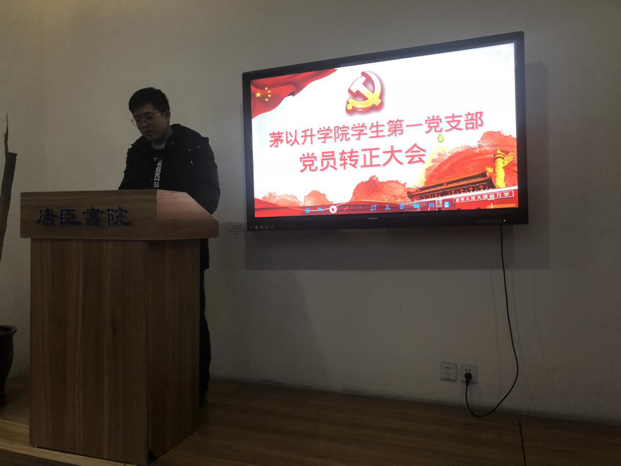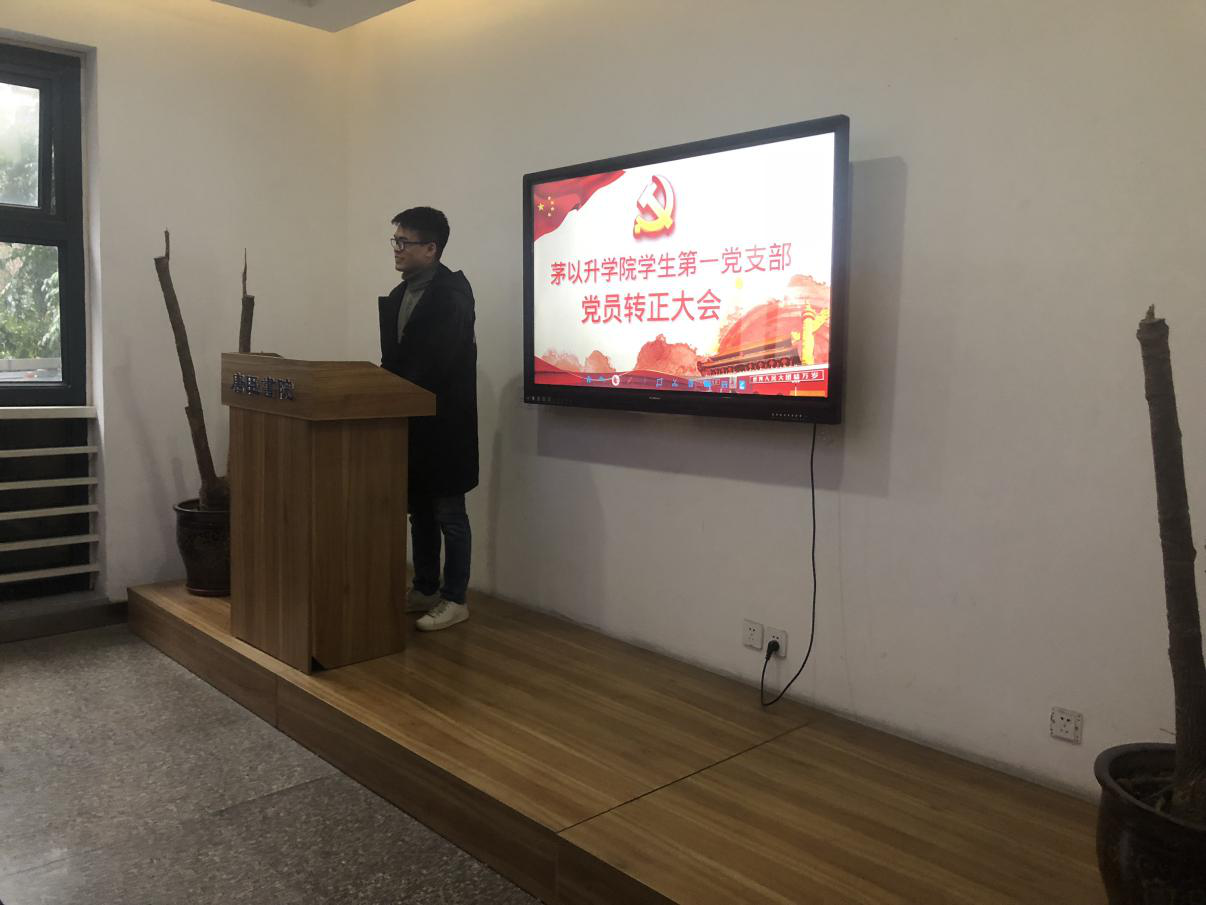 学生第一党支部党员转正大会”,旨在吸纳新鲜血液,壮大党员队伍,为支部发展奠定基础。会议由支部书记郭佑星同志主持,支部副书记钟若轩和第一党支部全体预备党员参加了本次大会。