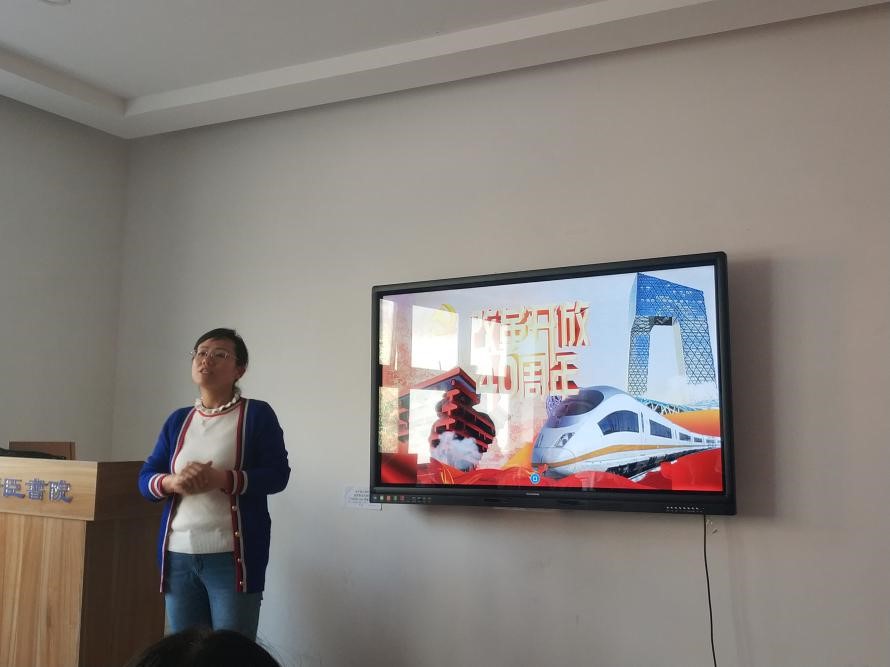 党总支副书记王霞老师给全体党支部成员上了一节主题为“回顾改革开放40周年”的党课。