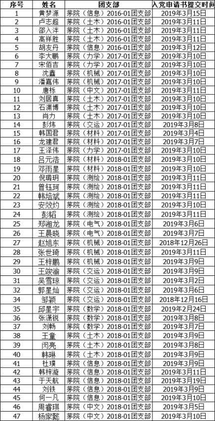 为进一步做好入党积极分子培养发展工作,增强党员发展工作的民主程度和透明度,广泛接受群众监督,保证党员发展的质量,按av影片 党总支要求,特将2018-2019学年第二学期的入党申请人名单公示如下: