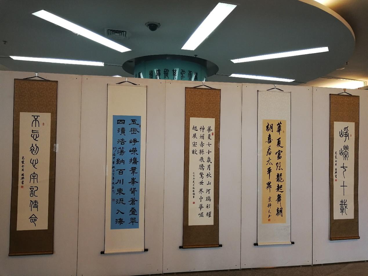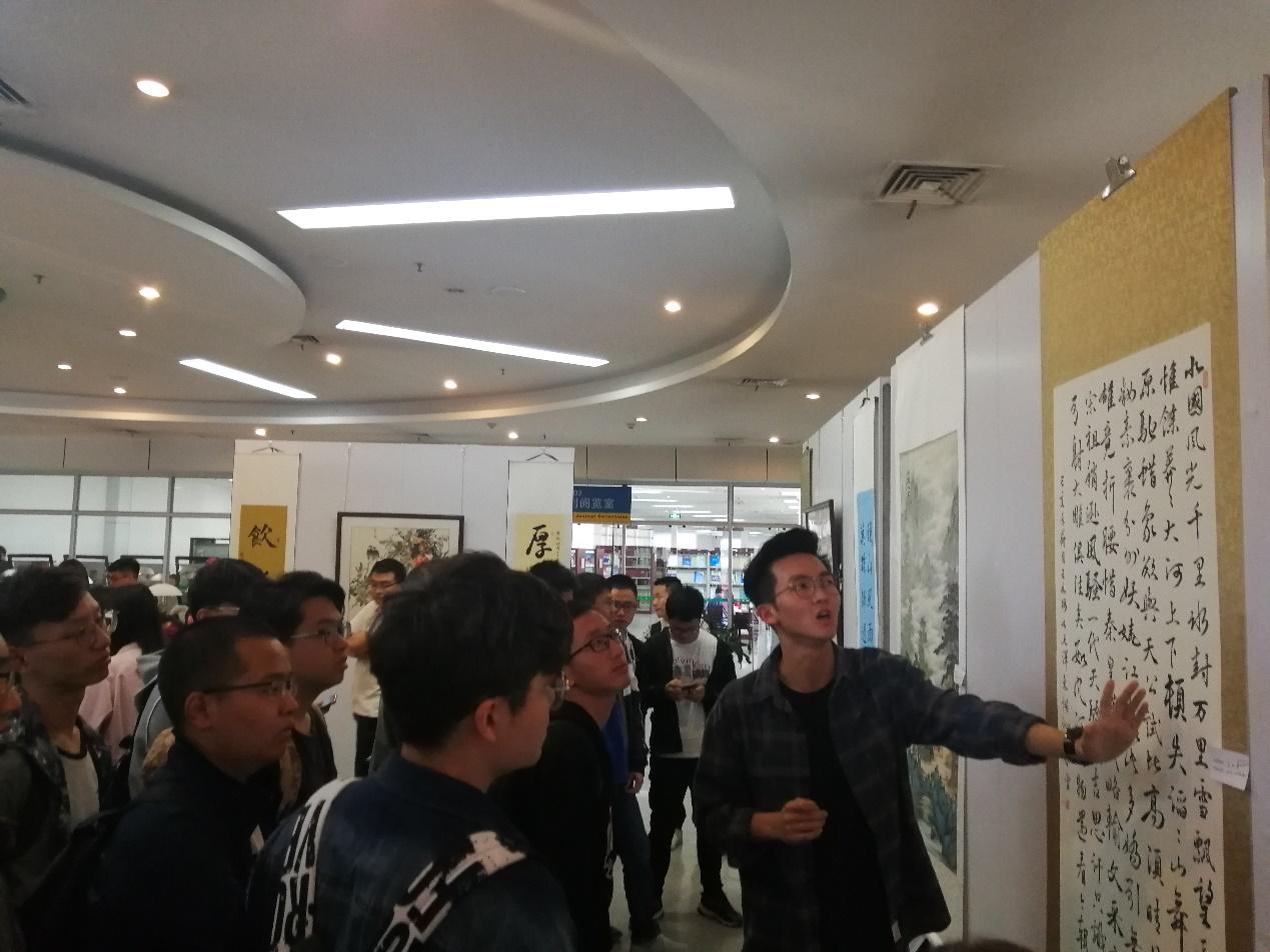 第二党支部的学生党员们先是在图书馆二楼参观了书画展,该展览精心挑选了学校老教授的三十余副作品,一幅幅珍贵的作品,是新时代新征程的无声赞歌。当天下午同学们热情高涨,专心致志的听书画协会会长介绍每幅作品的艺术形式及背后的历史文化内涵,同学们还积极与讲解员互动,在轻松的氛围中领略了学校老教授的多副作品,更是被老教授、老党员“青春奉献祖国心甘情愿,晚年不忘初心牢记使命”的精神所打动。