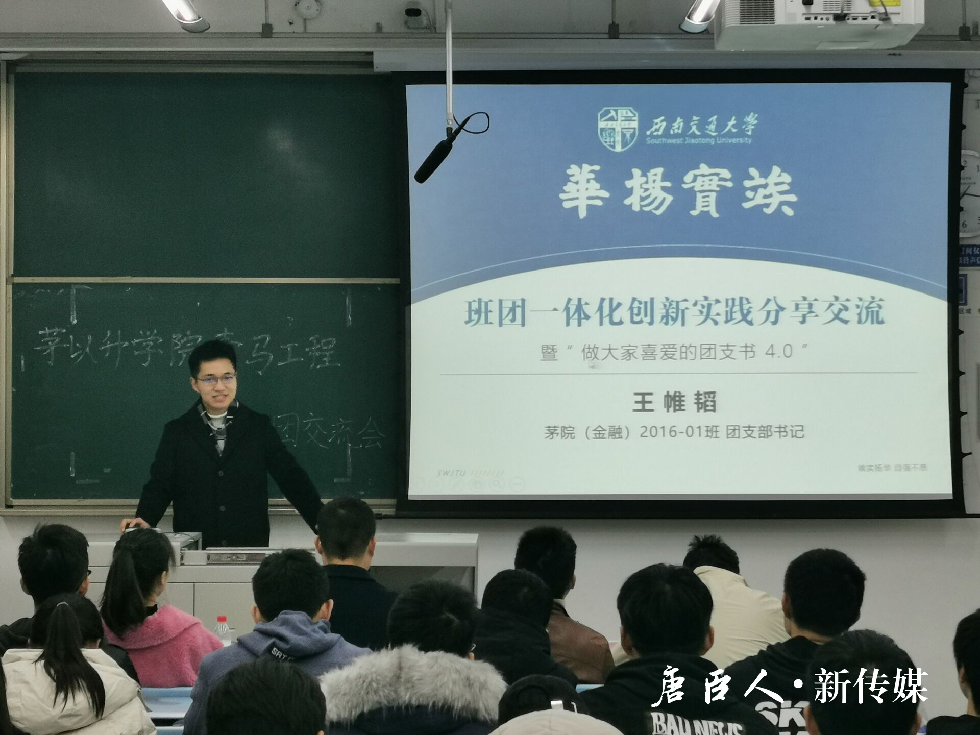 在交流宣讲中,王帷韬讲述了大学四年来担任团支部书记的心得体会,介绍了“班团一体化”从蛮荒生长到有序茁壮的发展历程。建立“茅金模式”,出台一体化章程,多次组织团学活动,一系列的创新实践,让在座的各位团支书折服于其出色的工作能力,更感动于其不渝的初心热忱。最后,他表示,希望能够通过“青马工程”这一平台,不断地为大家提供班团管理工作经验,不断传承唐臣温情与交大价值。