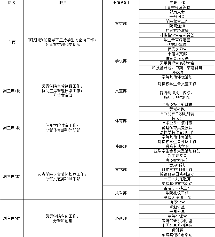 学生会进行了部门重组以及工作的重新分配。现面向全院本科生公开选拔av影片