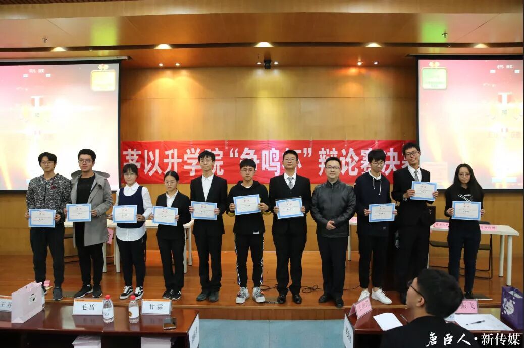 提问结束后,经过评委们的认真讨论,交运-力学联队以15:3的成绩获得了本场比赛的冠军,正方三辩吴雪琼同学更是以其个人的突出表现赢得“最佳辩手”荣誉称号。在比赛的最后,甘霖书记为比赛的两只队伍及比赛的最佳辩手们颁发奖状并与合影留念。