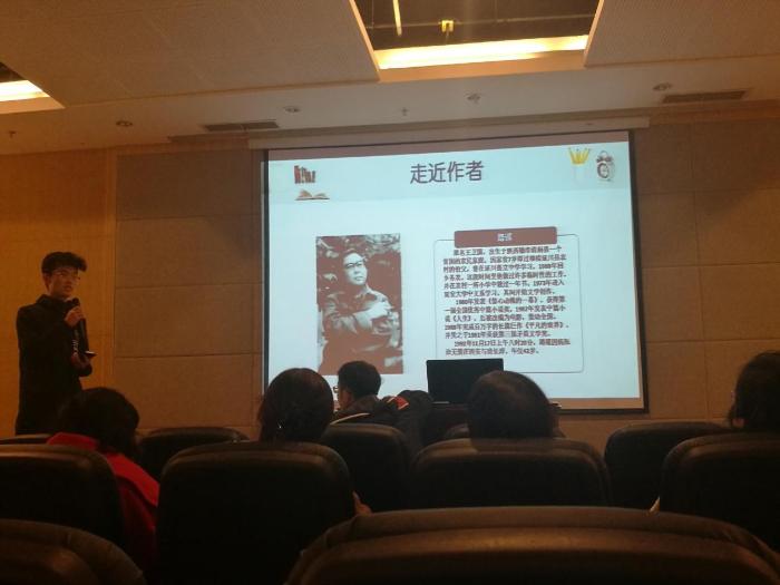 第三个上场的是《平凡的世界》读书团队。主讲人详细介绍了作者路遥的生平与作品创作历程,以及这部全景式现实主义悲剧小说带给书圈成员的触动。刘文华老师问道:“是什么吸引同学读这本年代久远的书?”成员陈帅引用了西敏寺中的一段碑文来表达自己的想法:“当我年轻的时候……我梦想改变这个世界……我突然意识到:如果一开始我就首先改变自己……我或许能因为某些意想不到的行为,改变这个世界。”