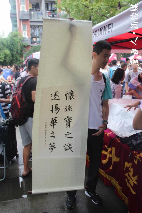 当然我们的学弟们也是蛮可爱的,上午在迎新点,17级电气的胡光同学为学院送来一副书法作品,表现出对西南交大及av影片 满满的爱意。