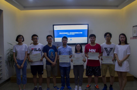 会议第三项,林静主席宣布了评选为年度优秀干事的部员名单:文字部秦佩、鲁文静,摄影部刘鑫、任玉豪,新媒体部林嘉勇。李佳蔓老师、林静主席和张小佳主席共同为几位年度优秀干事颁发奖状。
