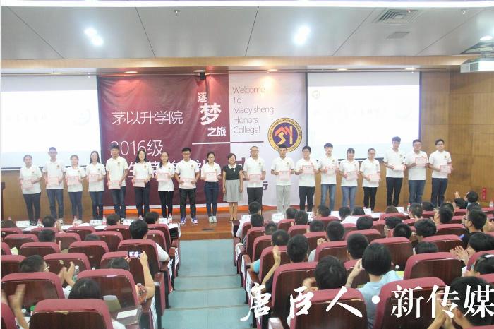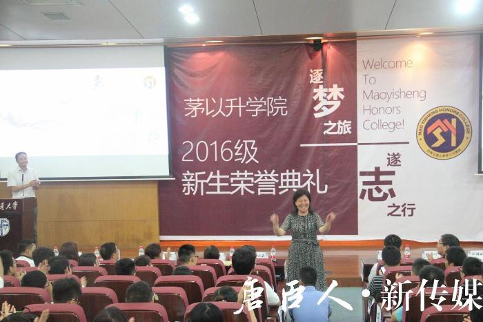 精心打造的跨学科创新课程——《传统手工艺与现代设计创新基础》、《纳米能源材料与集成系统》、《从代码到实物:造你所想》等让来自不同学院、不同专业的老师为同学们提供一个思维碰撞的机会,为同学们打造一个展示自己能力的平台。每个合格的茅院毕业生,都应当有“知识探究”、“能力培养”、“人格养成”、“价值塑造”的四维一体能力。那么如何成为卓越的唐臣人?郝莉教授送给大家十六个字:快乐学习、不言放弃、勤于实践、追求卓越!16级新生们听了院情介绍后,深受鼓舞,现场掌声雷动。