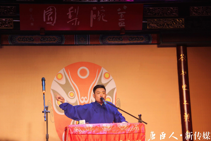 评书活动由三个部分组成,三位风格不同的先生带来了他们精心准备的故事。首先上台评书的是贾晓荻先生,他首先系统化的介绍了说书的类型,例如像《三国》这样的长枪书。接着又介绍了说书大家,作为袍带书的《杨家将》和短打《三侠五义》等,并且解释其来源。