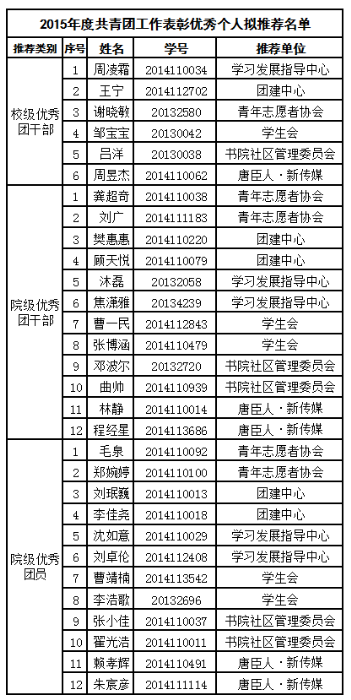 委员会2015年度五四表彰拟推名单》公示如下: