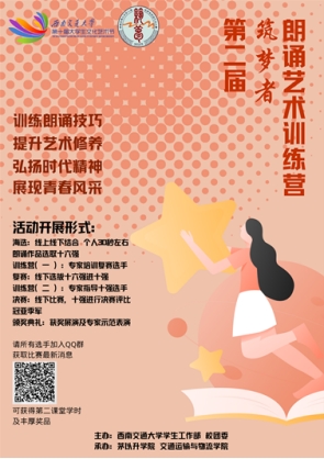 2023年是全面贯彻落实党的二十大精神的开局之年,为积极响应党中央号召,坚持立德树人根本任务,以社会主义核心价值观为引领,全力做好新时代美育工作,由学生工作部、校团委主办,av影片 交通运输与物流学院联合承办,四川省朗诵演讲艺术发展促进会协办的第十届大学生文化艺术节项目活动之第二届“筑梦者”朗诵艺术训练营正式开启,活动遵循“以美育人,以美化人,以美培元”宗旨,鼓励学生发挥特长,在体验与欣赏中提高自身艺术审美能力,培养乐观心态激发艺术热情;在弘扬中华优秀传统文化,革命文化,社会主义先进文化的同时,用朗诵艺术践行中华民族文化的伟大复兴,在声情并茂,情景交融的朗诵艺术中培养审美情趣,提高人文修养进一步推动健康高雅的校园精神文明建设。