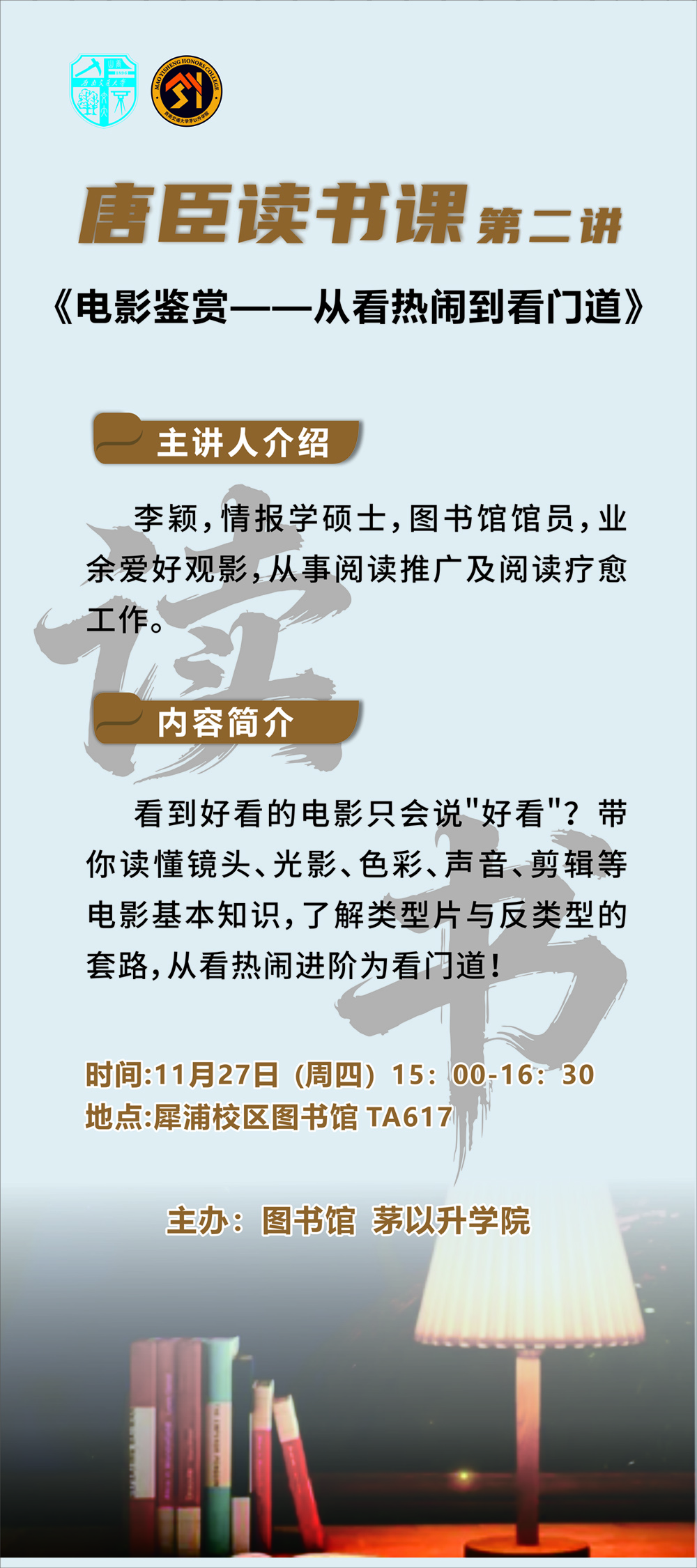 唐臣读书课第二讲《电影鉴赏——从看热闹到看门道》即将开课