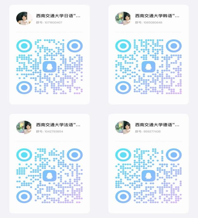 1.学生报名:符合条件的学生按照通知通知相关要求,扫描下方二维码填写资料报名,每个学院四个语种限报25人。要求于2026年3月10日24:00前扫描二维码报名并加入对于语种QQ群(附下)
