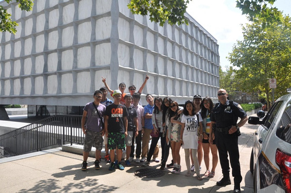 在圆满完成了在OSU的学习以后,游学团队启程赴美国东海岸进行为期一周的访问参观。从满世界都是明媚阳光的西海岸到喧嚣时尚又不乏文化底蕴的东海岸,我们横穿美国大陆,洛杉矶、纽约、华盛顿、波士顿,所到城市都极具个性,白宫、国会山、独立宫,自由钟,林肯纪念堂,越战纪念碑体让我们体验了美国的历史和现在。我们还参观了几所世界著名大学,包括有着总统的摇篮美誉的哈佛大学和耶鲁大学,在这两所大学里一共走出了20多个影响世界格局的美国首脑,而且这两所大学是全美收到校友捐助最多的学校。走进校园里,感受到浓厚的历史气息,有很多风格迥异的教堂和数不清的图书馆,每座建筑都有上百年的历史了。其间还偶遇一小插曲,我们在耶鲁大学的图书馆门口偶遇一个当地的警察,他对我们非常热情,热心介绍,他说他收养了一个来自广州的小女孩,现在和他生活在一起,这让我们倍感亲切。