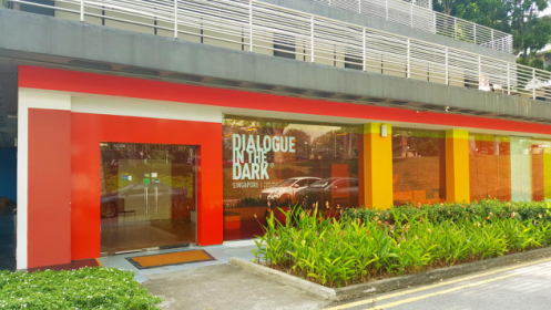 坐落于义安理工学院的“黑暗中对话”体验馆给了大家极大的震撼,我们8人一组,由一位盲人朋友引领着进入完全黑暗的空间,花了大概一小时的时间,用除视觉以外的其他感官去探索精心设计过的黑暗展区:游览公园,感受黑暗中的鸟语花香、小河流水,走过繁华的街区,穿过嘈杂的市场……
