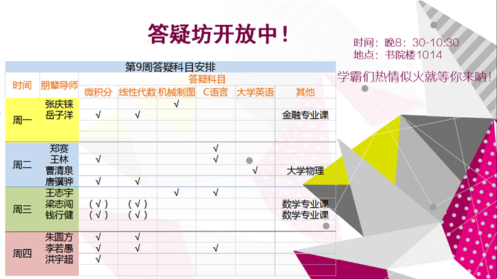【答疑坊】答疑坊第9教学周答疑科目安排