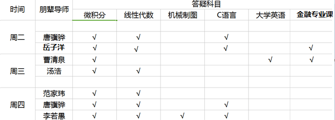 时间:每名志愿朋辈导师平均每周答疑一次,时间为每周一到周四晚上8点半到10点半。