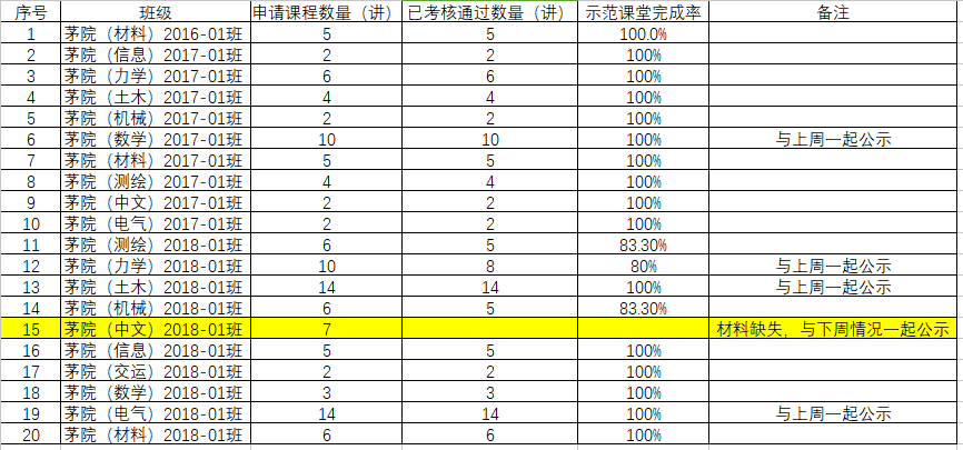 经学院审核,现将各示范班级第九周考核情况予以公示,具体公示如下: