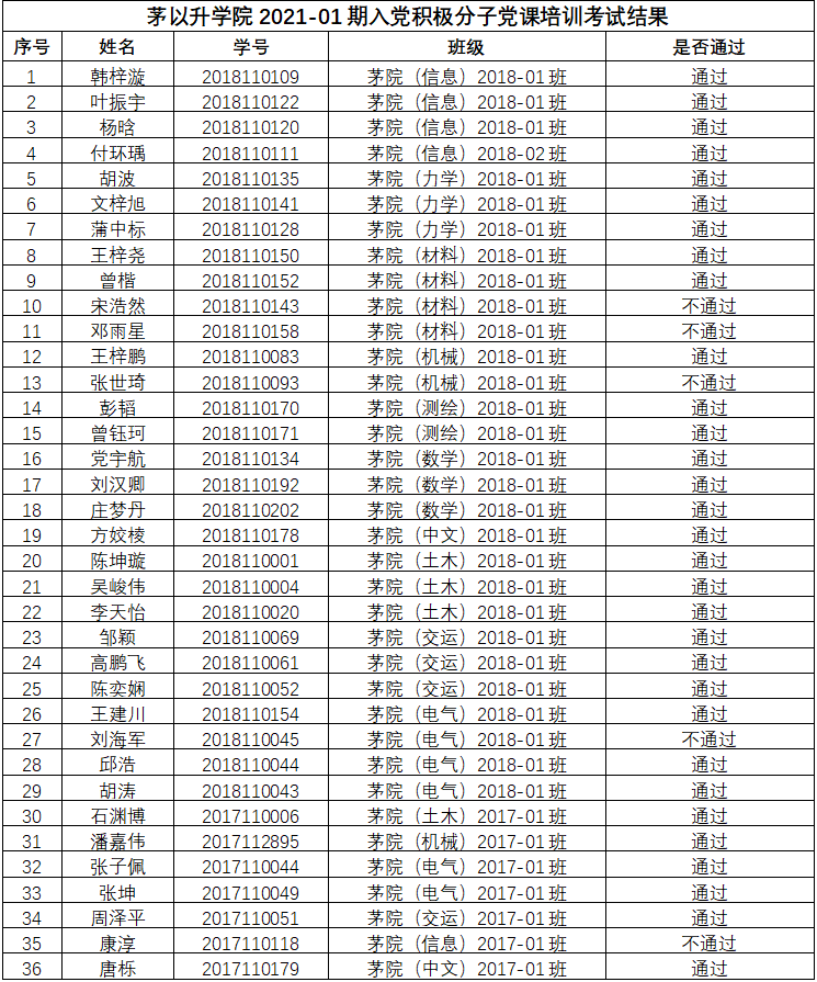 现将2021-01期入党积极分子党课培训成绩予以公示: