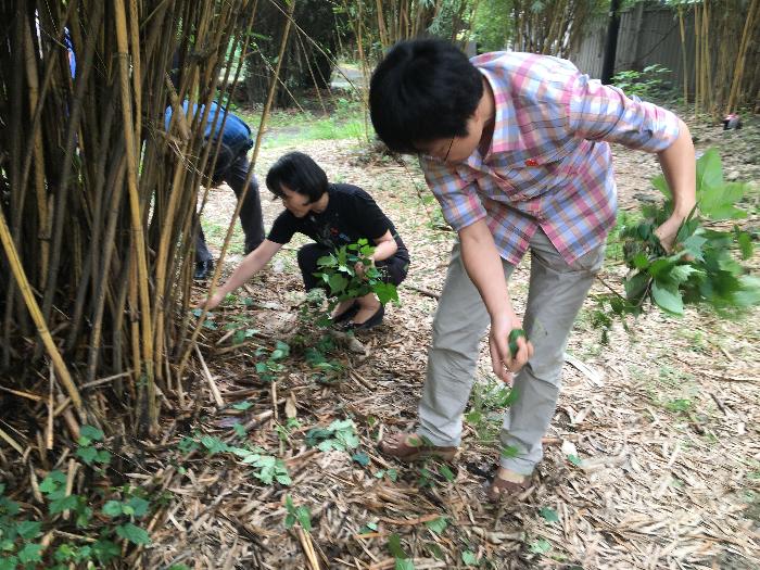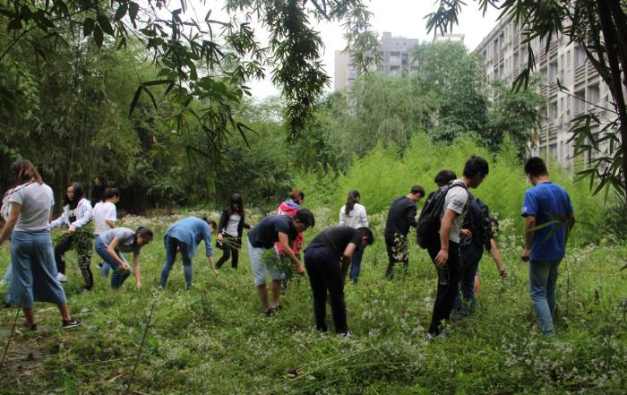 活动开始后,党员同志们在后勤保障处工作人员的指导下,清理了位于唐臣书院门口及后方的草丛,工作人员向大家演示了除草工具的正确使用方法,并不时叮嘱同学们注意防蚊虫,小心皮肤擦挂。党员干部们轻装上阵,拿起工具,在工作人员指导下悉心修建灌木丛,俯身除去地上的杂草。草地中央,有的为树木修剪多余的枝叶,有的用抓耙清理地上的落叶。大家还不忘发扬勤学好问精神,仔细向工作人选询问植被种植及维护相关问题。在党员同志们两个多小时的努力下,唐臣书院后方的环境焕然一新。