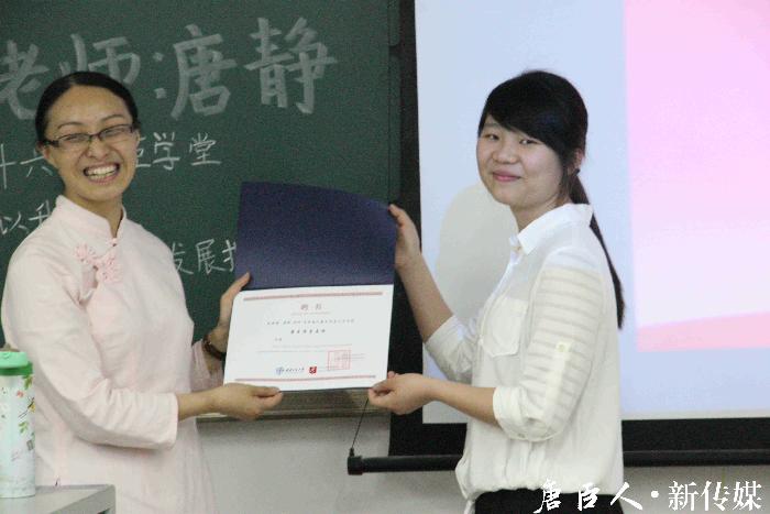学习发展指导中心副主席周凌霜为唐静讲师颁发av影片