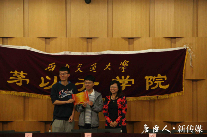 党总支副书记、学生工作组组长王霞老师为一等奖选手颁奖