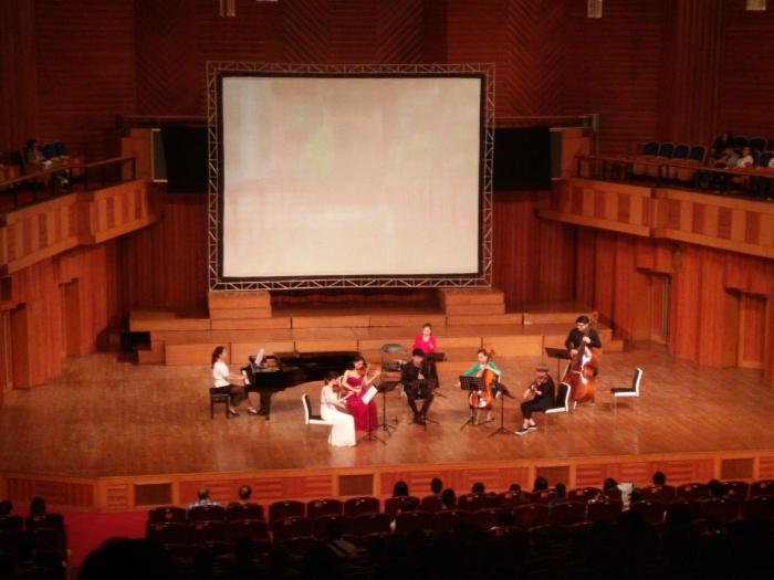 演奏开始,在音乐家们高超的演奏水准下,优美的音符绵绵浩瀚的席卷向观众,流云般轻盈又迅疾的音乐震颤着每一名听众的耳膜,空气中每个分子仿佛都在随着音乐整齐划一的运动而有了磁性,吸引着所有默默不语的倾听者,让所有人都进入了忘我的状态。
