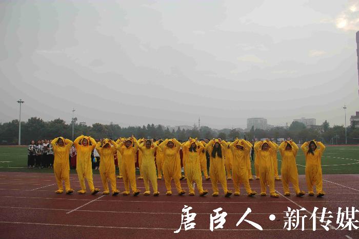 这次运动会的最大看点莫过于充满奇思妙想的开幕式,无论是精勤求学的茅院汉子还是温雅娴静的外院妹子,都各出奇招地挑战着观众们的萌点和笑点。每个班级在行进至主席台前时,都拿出各具特色的节目以博大家一笑。其中有憨态可掬的熊本熊、可爱的皮卡丘,有充满活力的加油操、搞趣逗笑的PPAP和网红舞蹈“咋了爸爸”,还有充满班级特色的各色班服,一些班还开起了火车……在轻松愉快的氛围中,各班依次在操场中央站定。嘉宾们纷纷致辞,表达了对本次运动会的期许与祝愿。在金秋时节纷飞的落叶下,两院的学子们将在这里挥洒他们的汗水并收获各自的喜悦。