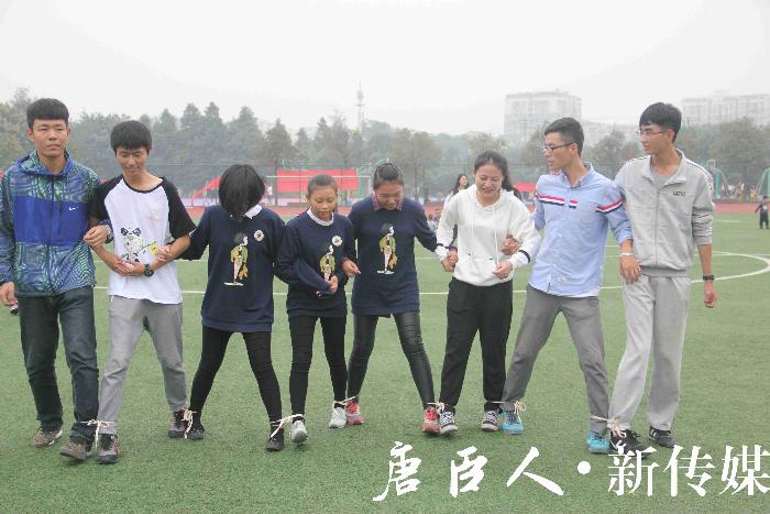 第一个项目是袋鼠运瓜,穿上麻袋的同学们正如一只只袋鼠,在赛场上矫健地奔驰着掠过终点,麻袋里的气球却依旧稳如泰山。赛场外是同学们山呼海啸般的掌声与欢呼声,夹杂着赛场中尖锐的鸣哨声,比赛在第一个项目中再次达到一个高潮。