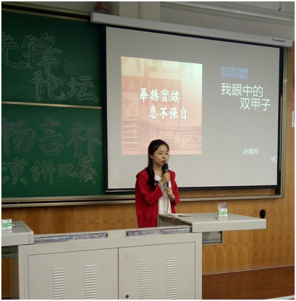 第二轮比赛选手大多是来自15级。他们基本上围绕了一个近似的话题,即我与交大、我与校庆、我与班级之间的历程。15级力学班的张之昱同学用自己与班级的成长来抒发了对于青春的感受。赵嘉熙同学利用丰富的图片材料为我们展示了一个全方位的校庆,她用自己担任大使团,接待校友、引领参观的经历为我们描绘了一个别样的校庆与交大。来自15级的梁志闯同学别出心裁地与我们讨论了一个新时代与大数据的话题。最后物理学院的辛毅老师对以上几位选手的表现作出了精彩点评,并指出作为大一的学生,能够有思想深度去讨论大数据时代等问题,说明我们大一的学生都是有思想、有抱负的。