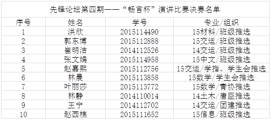 2015-2016学年团干部“先锋论坛”闭幕活动——”畅言杯“演讲比赛初赛在X4358教室隆重举行。