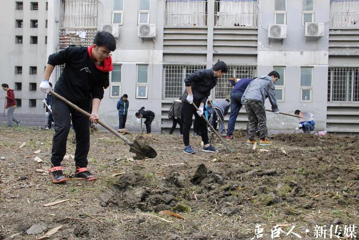 主办、院青年志愿者协会承办的植树节土地翻耕活动在唐臣书院后花园顺利开展。本次活动分为8:30—11:30、14;30—17:30两个时段,共计62名志愿者参与了本次活动。辅导员于雪婷老师也到达活动现场与志愿者们一起参与了翻耕。