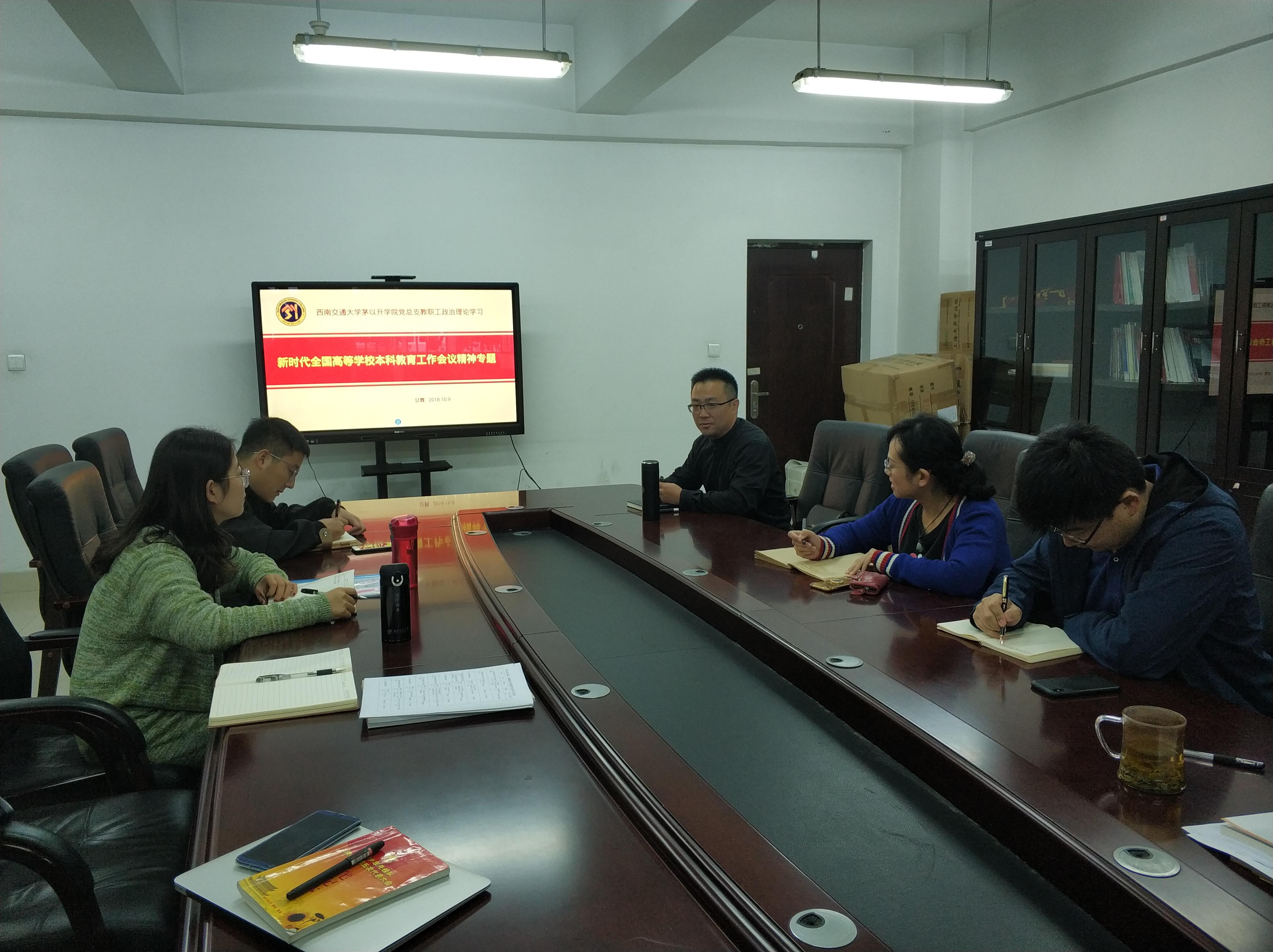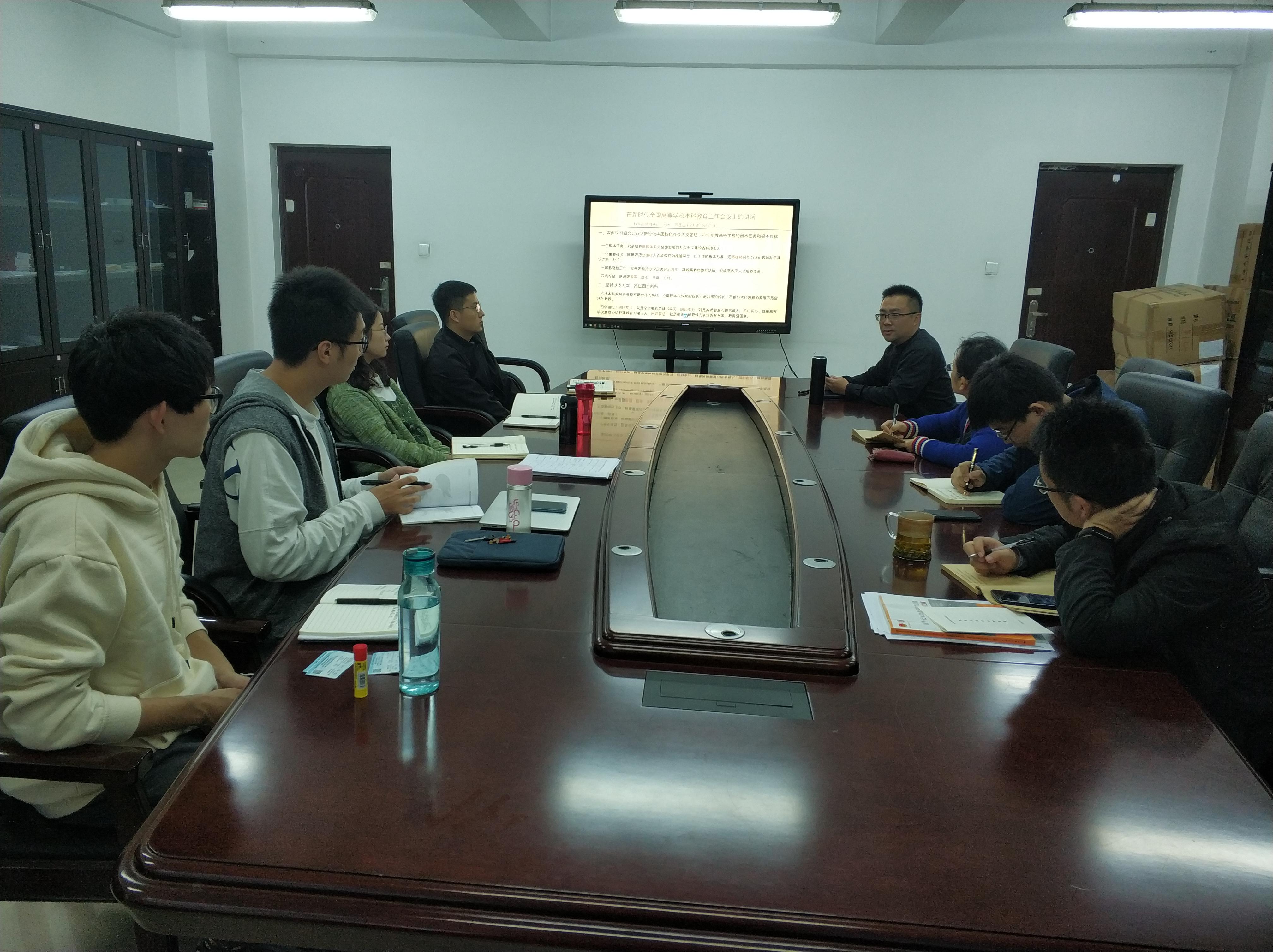 党总支在X1122会议室召开了2018年第八次教职工理论学习会议,专题学习新时代全国高等学校本科教育工作会议精神。会议由av影片