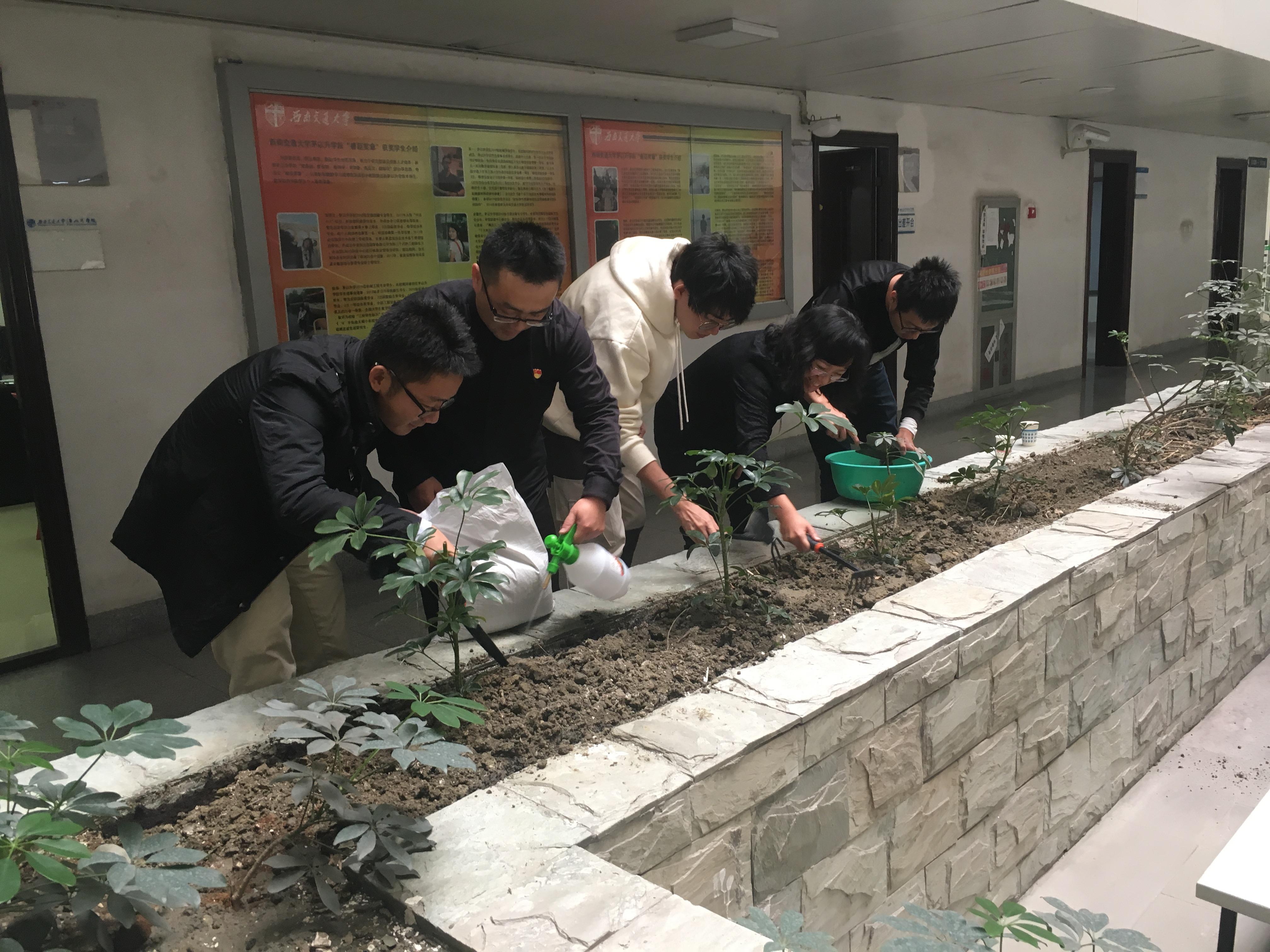 在甘书记的带领下,全体教职工党员在工作之余,播种下了康乃馨、勿忘我、美人樱等不同的花种。活动期间,老师们合作相助,既增进了感情,又美化了校园环境。