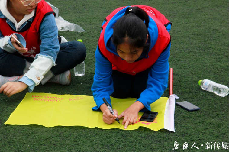 紧接着教练通过报数的方式对同学们进行了分组匹配,每组成员自行选出组长、副组长、纪律委员与旗手。每个职位都有自己的职责,每个小组都是一个有组织、有纪律的团体。在组长的带领下,每个小组都想好了各自的组名、口号与队徽,并将它们绘制在了自己组的队旗上。十个队伍各有特色,各有风采。如“引航队”,希望成为各组的引领者与领跑者;如“非常六队”,则用他们的队名展现出必胜的决心与信念;而像“黑凤梨队”,坚定以友谊第一为口号,充满了幽默细胞。各小组风格迥异,积极展示,尽显唐臣学子的青春与活力。