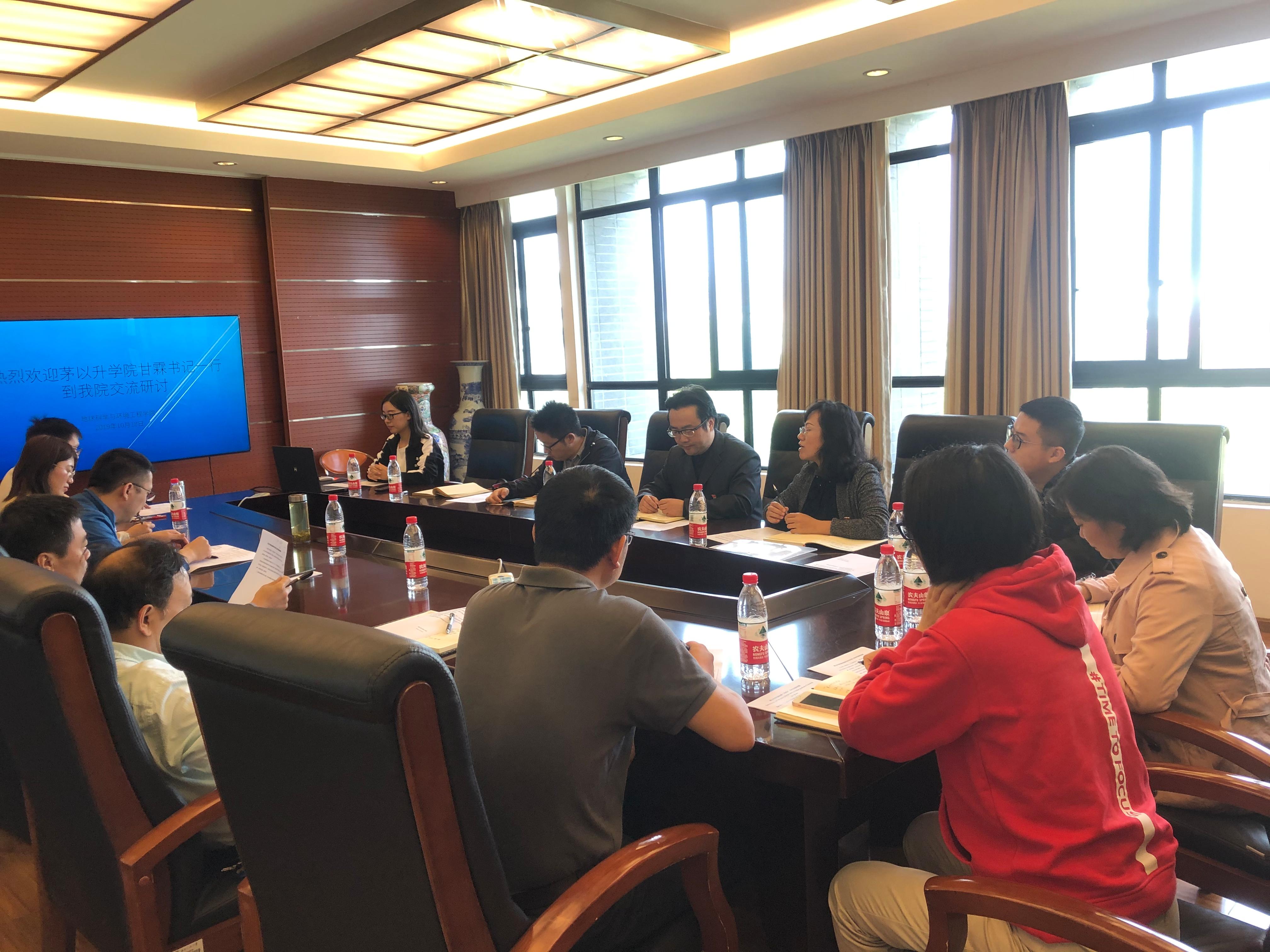 在人才培养工作中取得的成绩给予了高度赞扬。随后,双方重点就2019级人才培养模式、日常管理工作、学生党建、科创实践等问题进行了详细、具体的交流和探讨,并在加强学生科研实践合作交流等方面达成共识。甘霖书记表示,虽然学院目前在工作中面临诸多困难与挑战,希望双方学院不断加强协同共享,互相学习,更好地为学校全方位育人工作贡献力量。