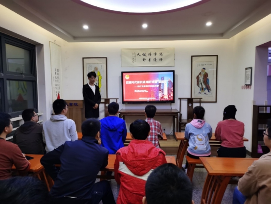 接着,团支部书记从“成渝地区双城经济圈”的战略意义、建设基础、建设渊源以及青年使命四个方面分别向大家介绍了成渝发展的现状和未来。生逢其时,重任在肩,助力建好“双城圈”,唱好“双城记”,是我们青年学子的时代使命,我们应当将个人理想与时代责任、国家建设紧密结合,练就过硬本领,做勇于创新的一代,让青春在为祖国、为人民、为民族的奉献中焕发出绚丽的光彩。