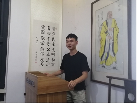 观看网上团课后,在团支书的组织下,同学们积极踊跃上台分享自己的体会。胡涛同学表示,他曾一度对自己的大学生活与未来十分迷茫。而此次活动提供了一个重新审视自己的机会,让他更加严格要求自己,在学习,生活与思想上抱着向上的态度,并积极向党组织靠拢。