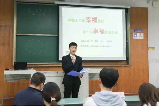 雷鸣老师先是告诉同学们一个人想要发展所必需的三样东西:知识,人脉与心理。然而心理往往是最容易被忽视却又始终重要的存在。雷鸣老师教导同学们:一个没有健全心理的人,及时拥有广博的知识与人脉,终究也不会真正幸福。