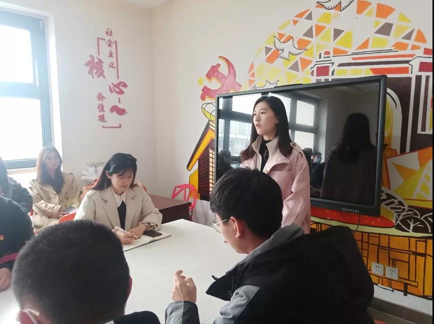 会议伊始,学生党支部书记任淑莉老师对此次会议内容做了简单介绍,并鼓励与会学生党员们分享观看《跨过鸭绿江》的感想。