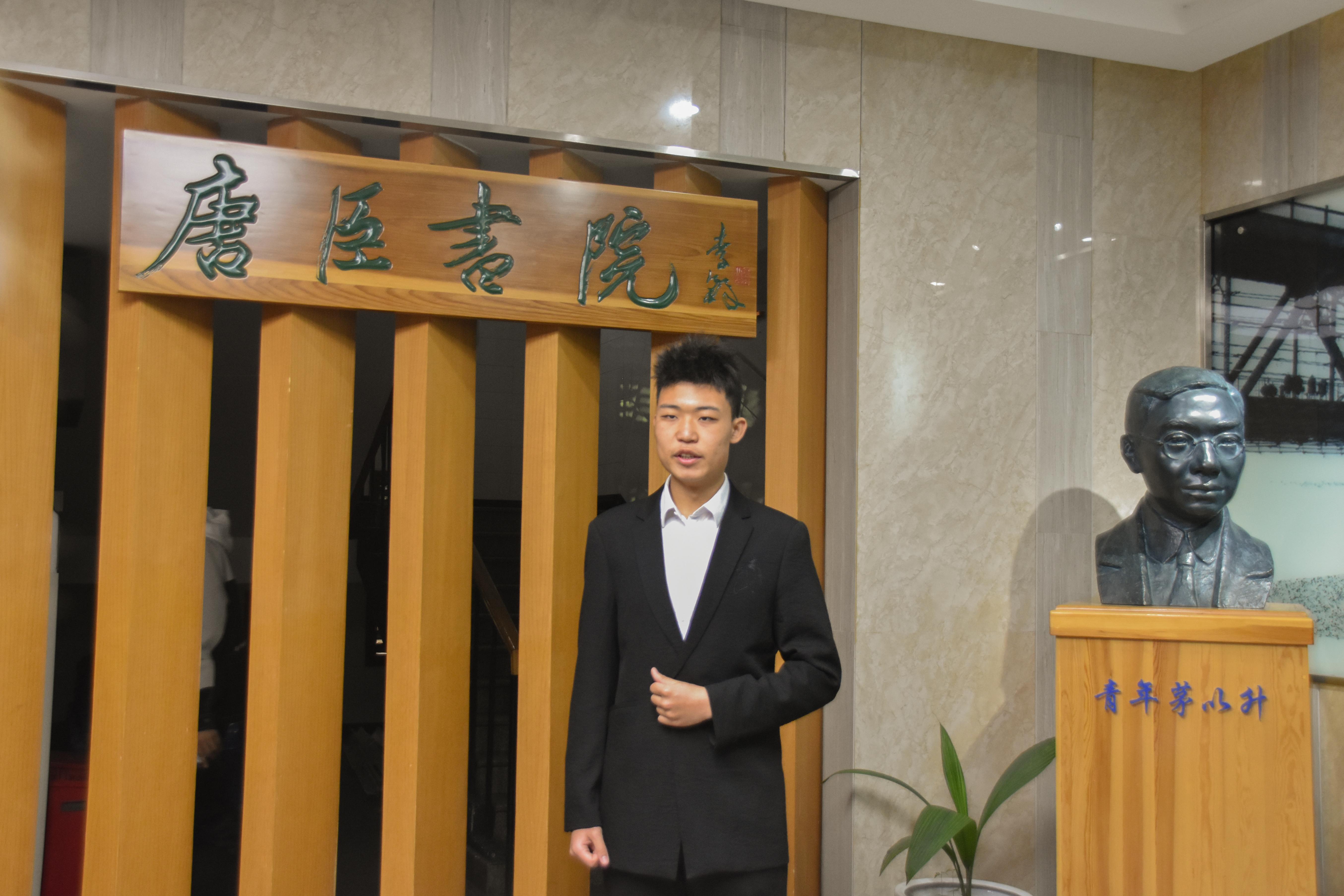 个人最高荣誉称号竢实扬华奖章获得者张龙豪同学为大家朗诵文章《心为祖国,身为先锋》,向茅以升先生致敬。“茅以升先生作为历史中的一颗明珠,闪烁出最耀眼的光彩,照耀出那个时代知识分子的坚韧与热诚,照耀着下一个世纪的人们,指引着新时代交大人、唐臣人前行的方向,茅以升先生的光芒永不熄灭,其精神永垂不朽。”