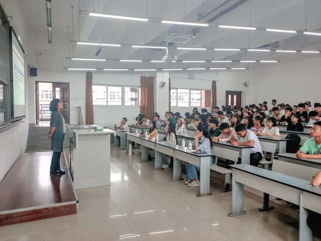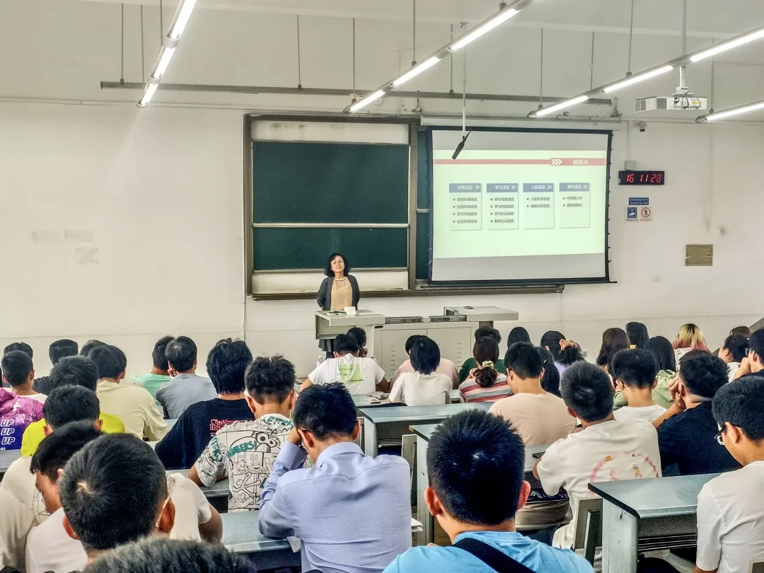 之后,王霞老师着重讲解了大学生应当树立四个意识和培养三个能力。即具有自律、主题、责任和安全意识和生活自理、人际交往及心理抗压能力。王霞老师也送给了同学们“敬”“谨”“净”“精”“兢”“竞”六个字,希望同学们能够不负青春韶华,走好人生之路。